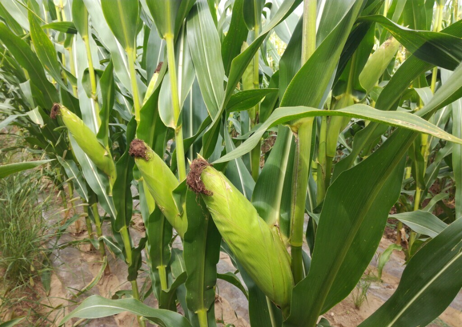 一年生草本。秆粗壮,直立,高1~4米,节间有髓,基部各节具气生根。叶片长大,扁平,剑形或披针形,先端渐尖,边缘呈波状皱折,具强壮之中脉。雄性圆锥花序顶生,雄小穗孪生,长达1厘米,含2小花;两颖几相等长,膜质,背部隆起,具9~10脉;外稃与内稃均透明膜质,几等长于颖;花药橙黄色,长达5毫米;雌小穗孪生,成8~30行排列于粗壮而呈海绵状之穗轴上;两颖相等,甚宽,无脉,具纤毛,第一小花不育;外稃透明膜质,似颖但较小而无毛,具内稃或否;第二小花外稃似第一小花者,具一内稃;雌蕊具极长而细弱之花柱。颖果略成球形,成熟后超出颖片和稃片之外。花果期6~9月。